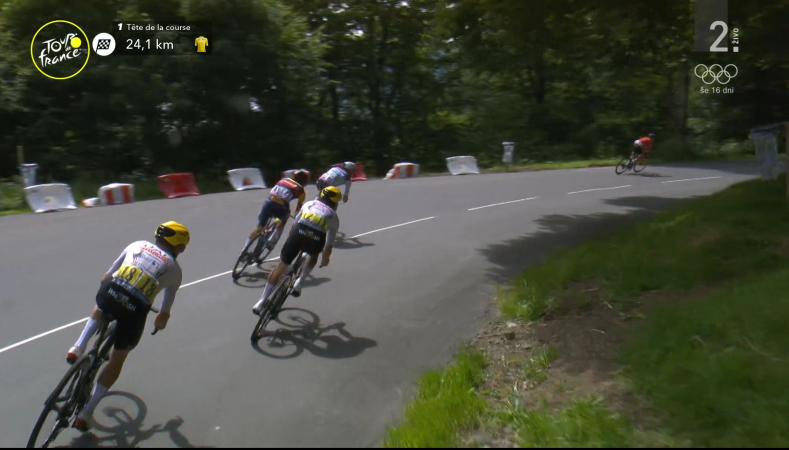 Primoža Rogliča pred ciljem. Po izjavah pristojnih naj ne bi bil usoden za
