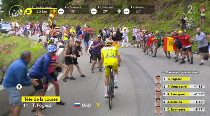 Pogačar osvojil prvi ciljni vzpon Toura in pobegnil Vingegaardu na 1:57!