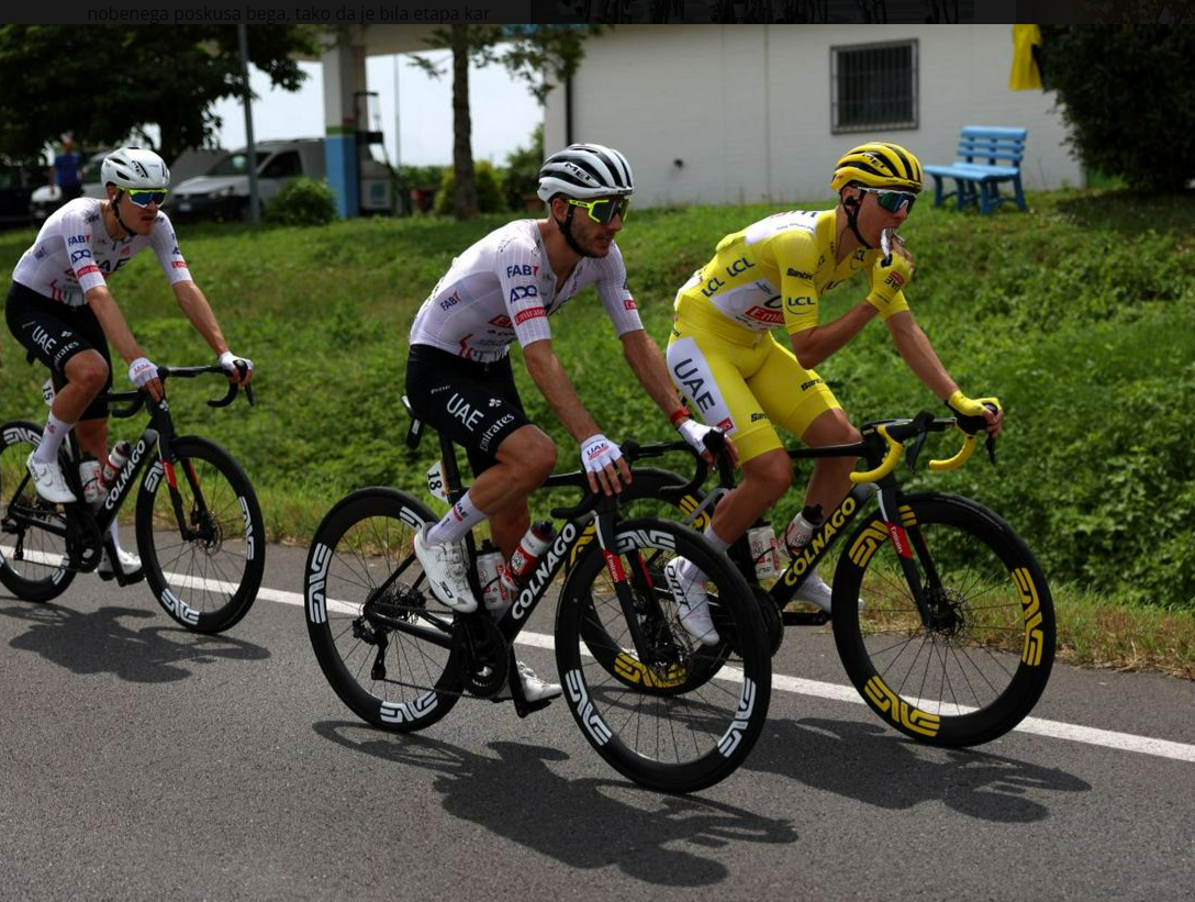 Tadej Pogačar z nasmeškom predal rumeno majico Carapazu