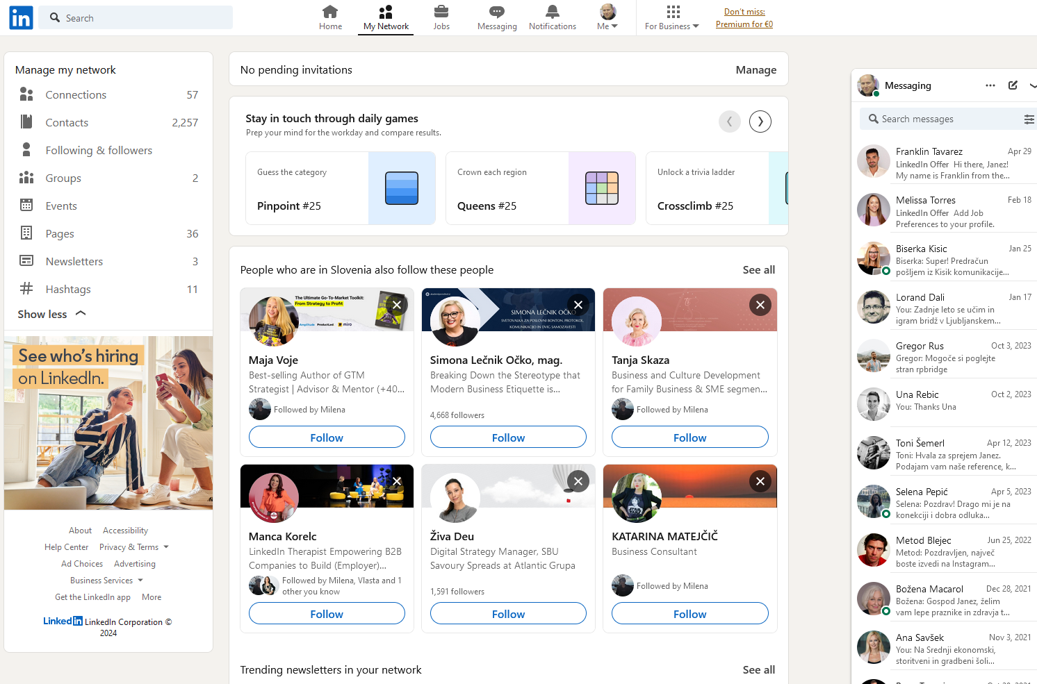 Linkedin časovnica