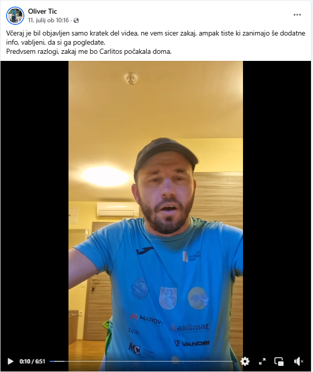 Oliver Tič je na Facebooku povedal (9. 9. 2025): "Prišel sem do točke, ko grem