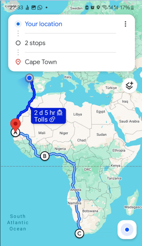 nadaljnih 15.000 km proti jugu, kar pomeni, da bo cesta ves čas samo navzdol."