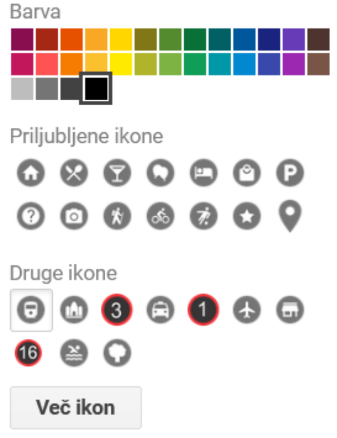 7.7 Vstavljanje simbolov v Googlov zemljevid vaše etape, ki