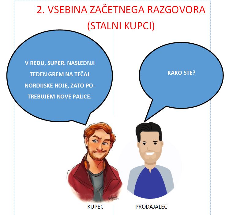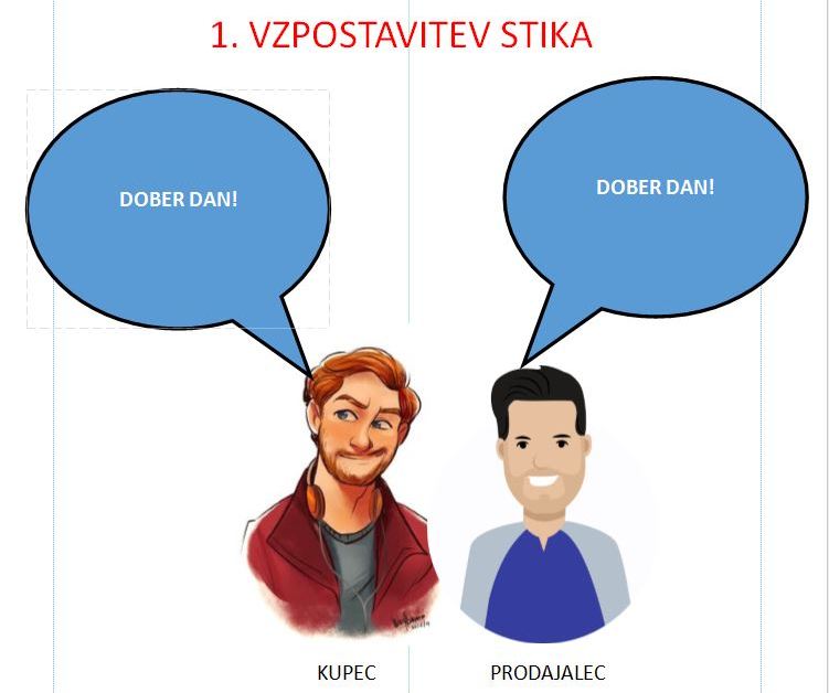Predvsem pri stalnih kupcih začnemo prodajni razgovor s “kontaktno vsebino”, ki se ne nanaša neposredno na predmet prodaje. |